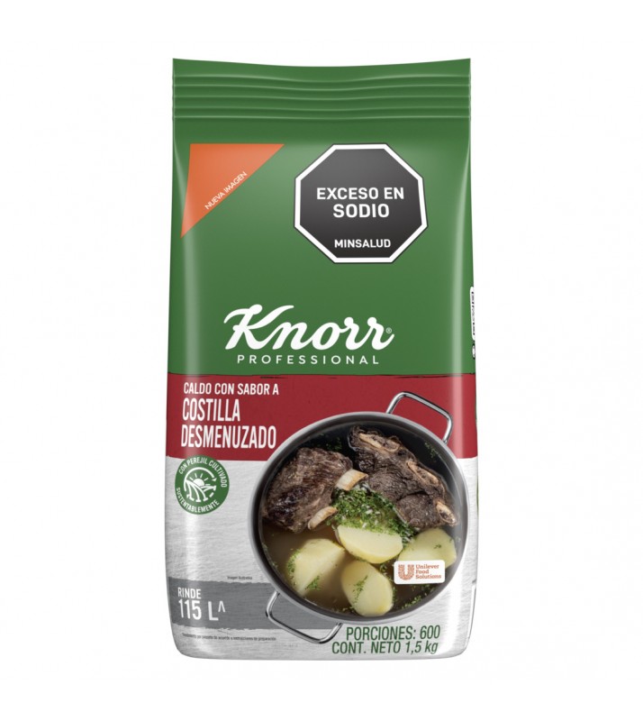 Hecho por profesionales para profesionales. Mejor disolución (Con respecto al líder de mercado en caldo de costilla basado en estudio hecho con consumidor en las ciudades de Bogotá, Barranquilla y Medellín). Con hierbas y especias 100% naturales. Sin conservantes por sus ingredientes deshidratados. Libre de colesterol (ver información nutricional para sodio y otros nutrientes). Rinde 94 litros (Preparado de acuerdo a instrucciones de uso).