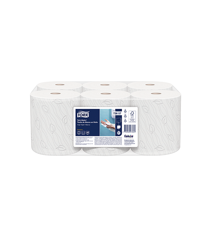 Toalla De Manos En Rollo Continua Blanca Hoja Triple Tork 120 Mt X 6 Und Ref 73657