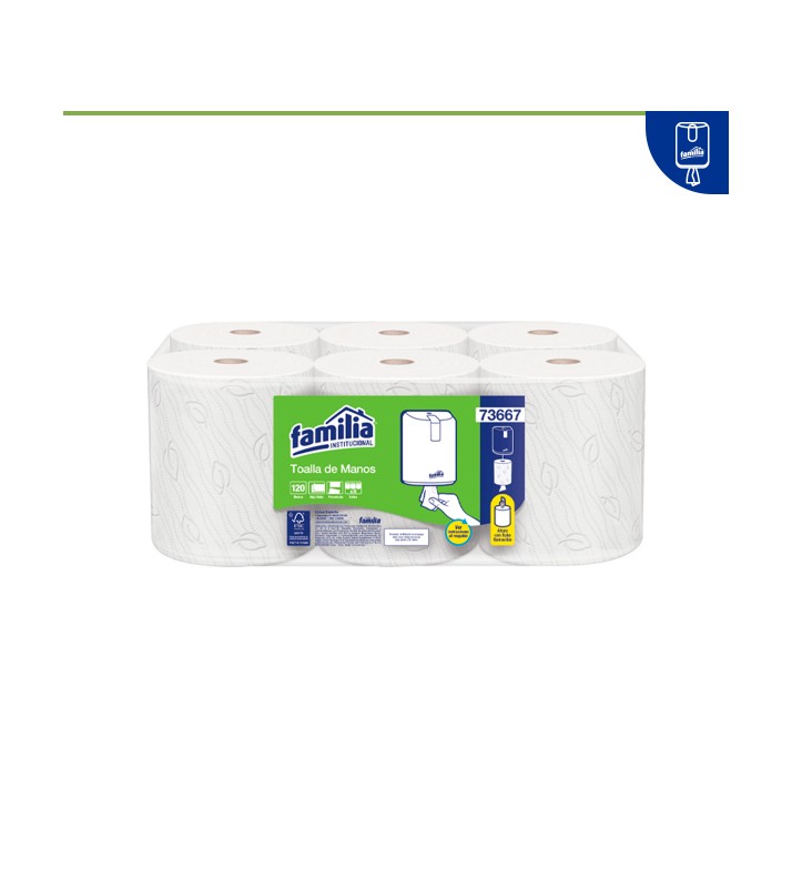 Toalla De Manos Flujo Central Blanca Hoja Doble Rollo X 120 Mts Paquete X 6 Familia