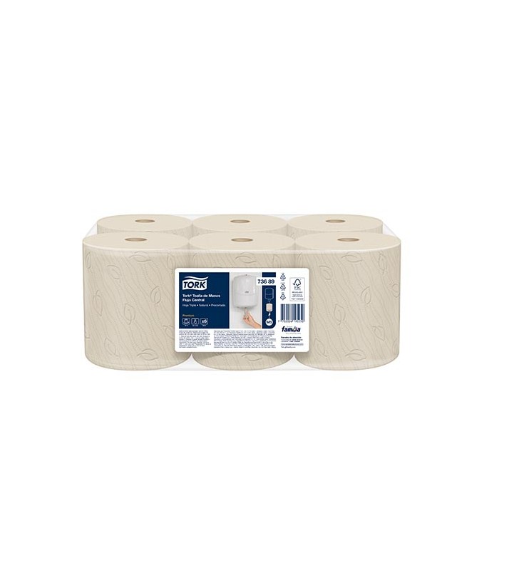 Toalla De Manos Flujo Central Hoja Triple Tork 100 Mt X 6 Und Ref 73689