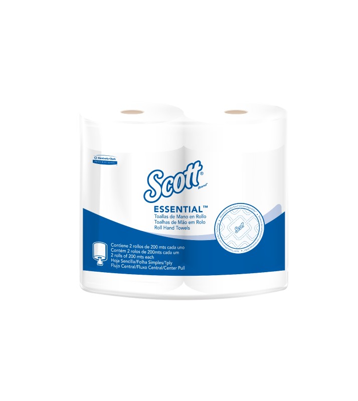 Toalla De Manos Scott Essential Flujo Central Blanca Hoja Sencilla 200 Mt X 6 Und Ref 30241002 Kimberly Clark professional