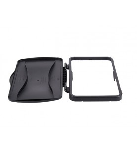La tapa abisagrada Slim Jim® permanece doblada mientras esta en uso y cubre los residuos cuando está cerrada.